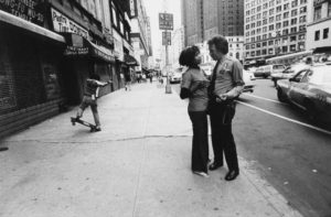 A Love Poem for New York displays, above all, heartbeats of intimacy that withstand the changing weather of time. A young boy pivots on his skateboard behind a cop embracing his girlfriend on the sidewalk. A family stands together on their stoop in Harlem beside portraits of Martin Luther King Jr. shortly after his assassination. Handwritten messages adorn makeshift walls and protest signs.