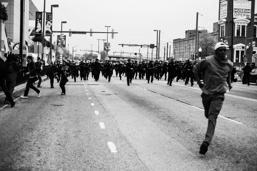 In mid-April 2015, the city of Baltimore erupted in mass protests in response to the arrest, hospitalization and resulting death of Freddie Gray who was severely injured while in police custody. This exhibition provides a window into the heart of the frustration and outrage of a community in response to police brutality not only in their own city, but nationwide. Allen’s camera acts as a witness to the first peaceful public protest that evolved into rioting casting an international spotlight on the city. The work not only acts as an archive of the demonstrations in response to Gray’s death, but also forces the viewer to ask hard questions of their society and of themselves. The images humanize the often misrepresented protesters of the burgeoning Black Lives Matter movement and complicate prevalent ideas about the “ghetto” as Allen strives to capture the life of his city and the people who live there.