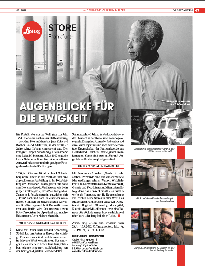 Jurgen Schadeberg in new exhibit “Seen and Unseen” at Leica Gallery, Frankfurt Date: Apr 28, 2017 - Jul 15, 2017 www.jurgenschadeberg.com