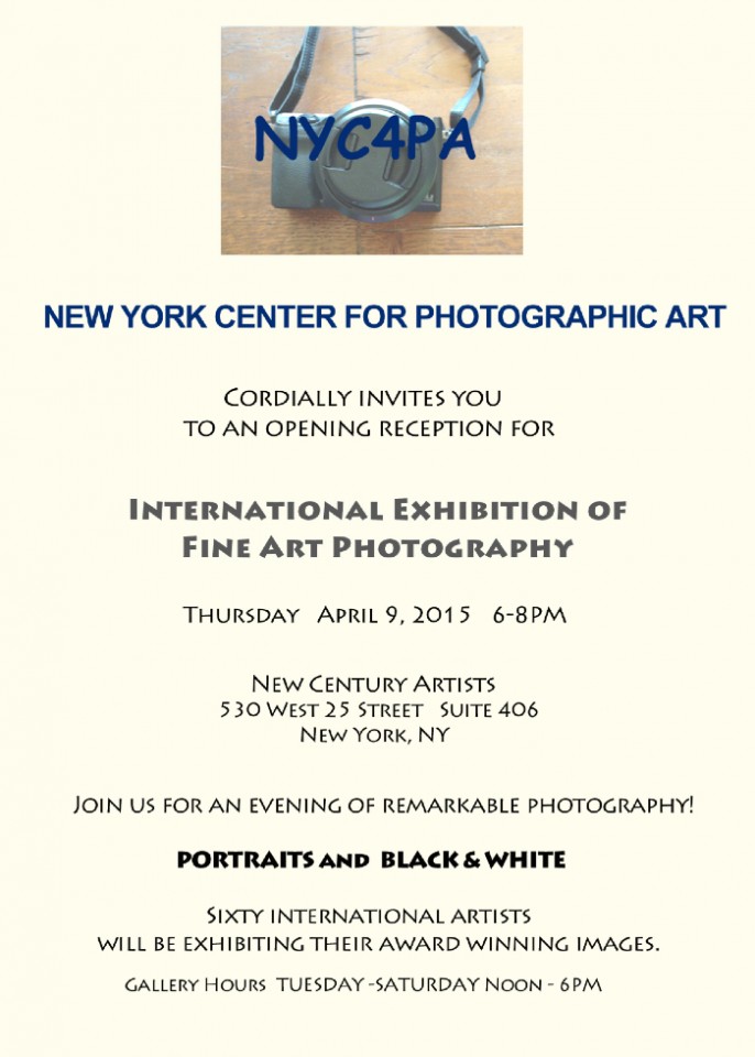6 – 8pm at New Century Artists, 530 West 25th St, #406, NYC.
